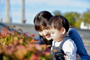 小さな子供と話すとき、大人がしゃがんでお話する。
